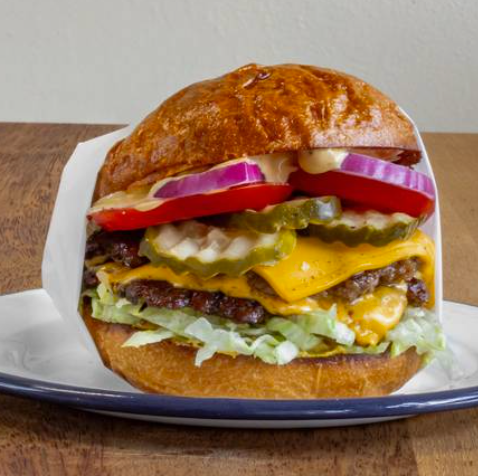 Single or double. Comes with smashed beef patty, lettuce, tomato, dill pickles, onion, cheese, patty’s sauce, mustard and milk bun.